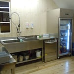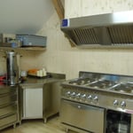Die moderne Küche verfügt über einen Industriegeschirrspüler, sechs Kochfelder, Backofen, zwei Kühlschränke, einen Gefrierschrank und Geschirr für 50 Personen.