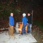 Feuerstelle mit Grillrost (Kupferkessel für diverse Gerichte) und zusätzlich ein Doppelgasgrill.