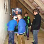 In der Dachschräge befindet sich ein Spielraum mit einem Flipperkasten und Töggelikasten.